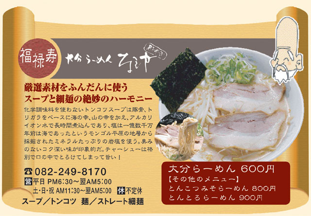 中四国代表、豚骨醤油系本格ラーメン専門店